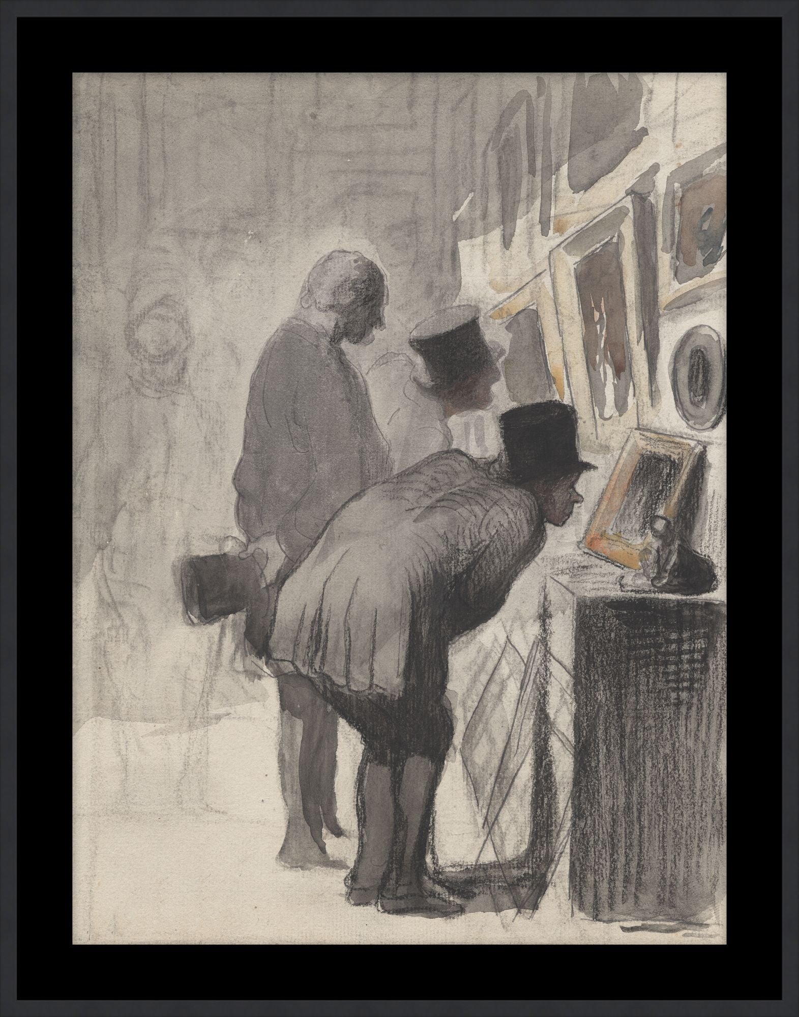 Detail: Textured Paper - Single Matboard | M3 - Black Smooth + Cream Core Width:2.5" | F1344 - Matte Black Cap Frame - Width: 0.75
